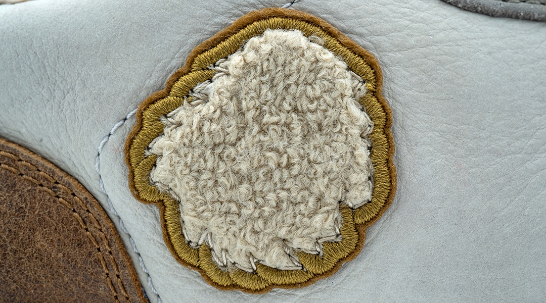 The brand logo comes to life on the side patch, embroidered in chenille — a soft, textured fabric that invites touch. A unique and authentic detail.