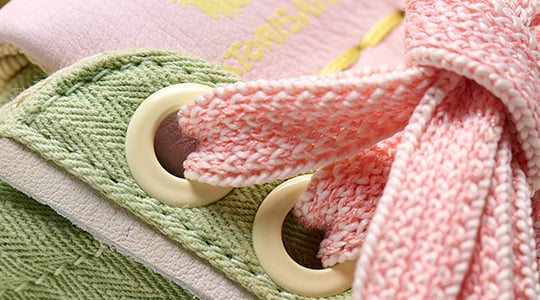Hatko features oversized eyelets threaded with long, colorful laces. Unleash your creativity and tie them with a double knot or a bow!