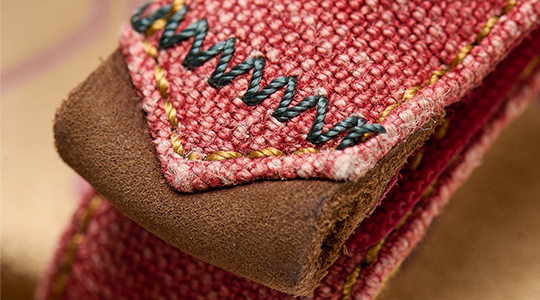 Every detail in our designs matters. Like this zigzag stitching with colorful threads that contrast beautifully with the linen, and the leather-trimmed strap.