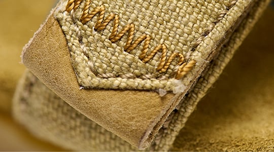 Every detail in our designs matters. Like this zigzag stitching with colorful threads that contrast beautifully with the linen, and the leather-trimmed strap.