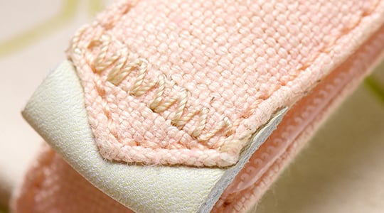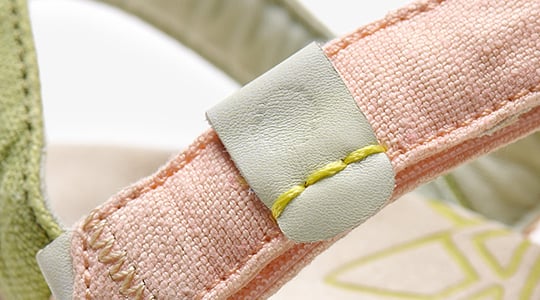 Every detail in our designs matters. Like this zigzag stitching with colorful threads that contrast beautifully with the linen, and the leather-trimmed strap for added durability.