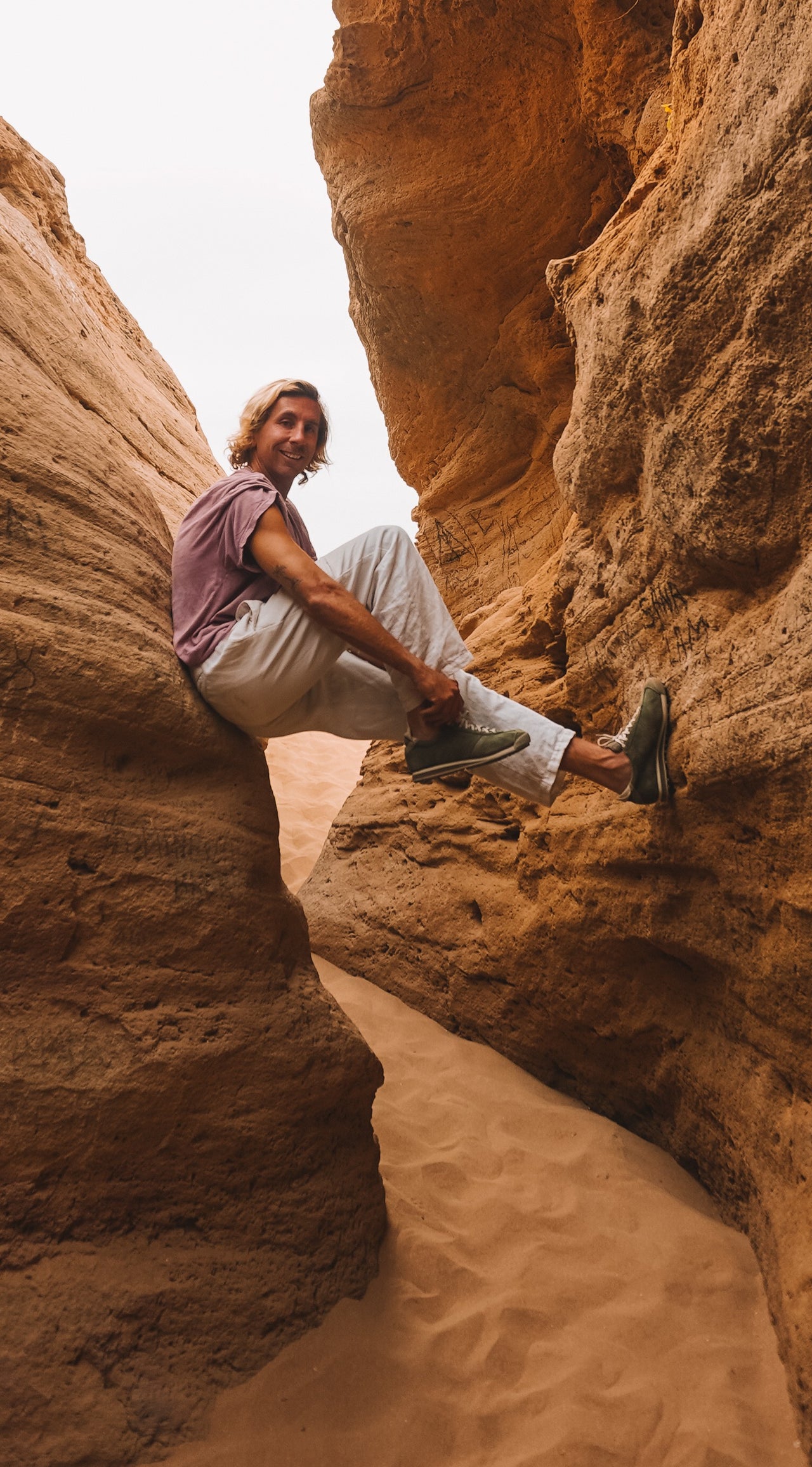 Inspirada en la pequeña bahía de Ibiza llamada “Benirras”. Una sandalia de piel unisex, hecha a mano y sin costuras. Un clásico con look rústico y alma hippy.