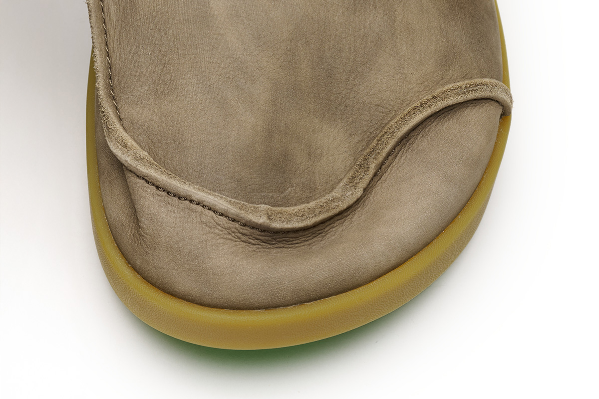 - Detalles artesanales como el cosido en la puntera y la etiqueta de cuero cosida a mano.
