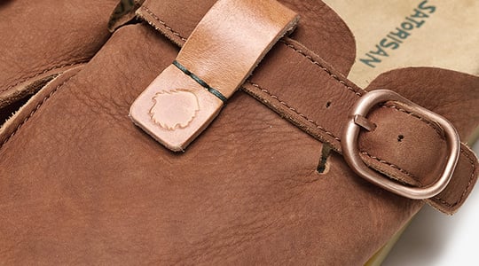 - Detalles artesanales como el cosido en la puntera y la etiqueta de cuero cosida a mano.