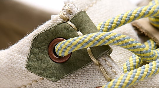 - Lino premium italiano combinado con pieles certificadas por Leather Working Group (LWG) con clasificación Oro