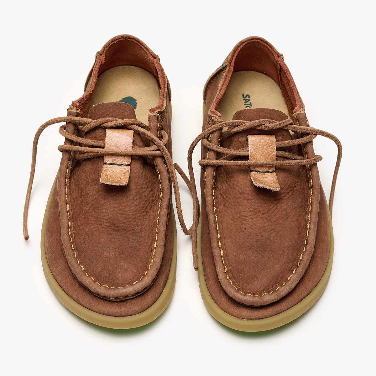 Kwahu, inspirado en el Kachina favorito de los artesanos Hopi, rinde homenaje a la naturaleza salvaje y a la artesanía. Esta reinterpretación de los mocasines "wallaby" de los años 60 combina comodidad, estilo y detalles únicos, evocando los movimientos y la majestuosidad del águila en cada paso.