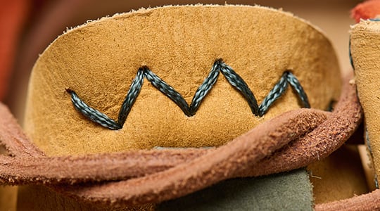 La versión étnica de Kwahu Premium. Los cordones de piel y los pespuntes cosidos a mano le dan un aspecto rústico y natural. Adornado con pequeños flecos en los ribetes que evocan los motivos indígenas del noreste de Arizona.