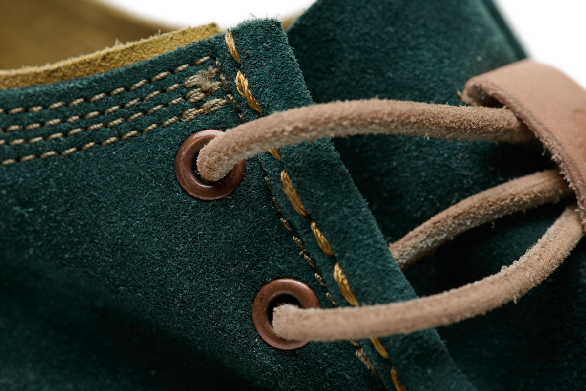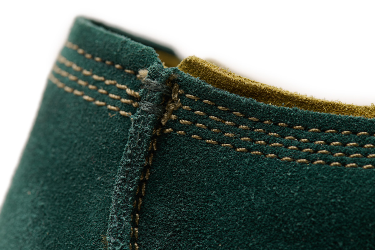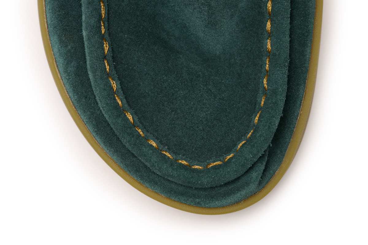 Inspirado en los mocasines "wallaby" de los años 60, esta nueva versión sin forro es aún más suave y cómoda gracias a la sustitución del cuero de plena flor por serraje. Los detalles singulares como los cordones de piel y los cosidos a mano, crean un look realmente rústico y natural.